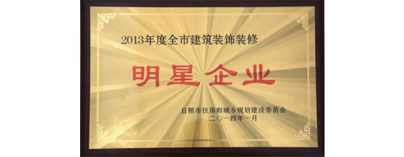 華業(yè)玻璃被日照市住房和城鄉(xiāng)規(guī)劃建設(shè)委員會(huì)授予“2013年度全市建筑裝飾裝修明星企業(yè)”。