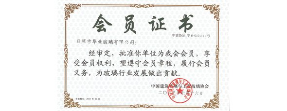 華業(yè)玻璃成為“中國(guó)建筑玻璃與工業(yè)玻璃協(xié)會(huì)”會(huì)員。